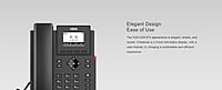 X301/X301P is the cost-effective SIP phone with multi-function. It features a 2.3-inch 132x64 pixel dot-matrix display, supporting 2 SIP lines and 6-way audio conference to render a user-friendly experience. X301/X301P has rich functions such as HD audio, dual 10/100 Mbps network ports and integrated PoE(only X301P), providing an efficient and high-quality business communication experience for enterprises.