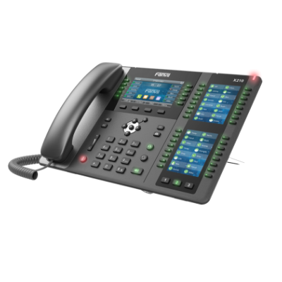 The Fanvil X210 Enterprise IP Phone is an elegant enterprise phone for the executive user. The X210 features 2 side color displays both in vibrant color providing the most work efficiency. This high-level phone also features Gigabit Ethernet with PoE support, as well as support for EHS, built-in Bluetooth and Wi-Fi through a separate dongle.