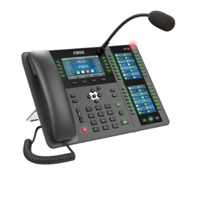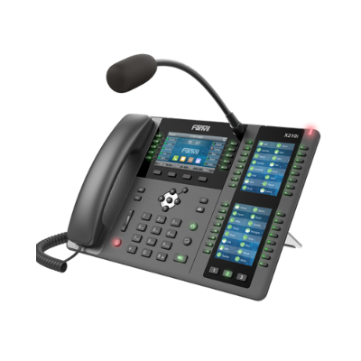 Fanvil X210i Paging Console Phone The Fanvil X210i Paging Console Phone has been designed to be used as a monitoring center station or as an office manager phone where the user would be making hands-free calls, using a two-way intercom system, monitoring and or broadcasting within a business. The X210i has a gooseneck microphone, supports HD calls, and features programmable DSS buttons that can be easily set up for one-click call functions to improve productivity and efficiency in the workplace. Fanvil X210i Paging Console Phone Overview The X210i has been designed with users in mind to help enhance office management as well as improve emergency response capabilities. The professional directional gooseneck microphone suppresses background noise and provides high definition audio. Moreover, both the speakerphone and handset support Opus codec for crystal clear, lifelike voice communication. Two convenient 3.5" side DSS integrated consoles eliminate the need for additional external extension modules. Users can set up to 96 DSS keys, 32 of which are physical and the rest virtual. In addition, there are 10 DSS keys on the main display for a combined total of 106 DSS keys that can be used as BLFs, speed dial keys or configured for group broadcasting amongst other functions. The X210i has integrated video capabilities that allow you to integrate the phone with multiple IP cameras. With the push of a button, users are able to view the configured cameras in real time. The X210i can also be paired with the Fanvil SIP video door phone devices. You can have two-way conversations with visitors as well as unlock doors directly from your X210i IP phone. The X210i can be connected to Wi-Fi via a dongle, has integrated Bluetooth and supports EHS headsets. Fanvil X210i Features and Specifications: · 20 SIP lines, 3-way conference · HD audio on speakerphone and handset · Movable type Directional External Gooseneck Microphone · 4.3" main color display · 2×3.5" side color displays for DSS keys · Up to 106 DSS keys (42 tri-colored physical keys) · Dual Gigabit ports, integrated PoE · Built-in Bluetooth · Wi-Fi connectivity (via Wi-Fi dongle) · Video codec H.264 support for receiving video calls · Support EHS headset · Stand with 2 adjustable angles of 40 and 50 degrees · Compatible with major platforms: 3CX, Asterisk, Broadsoft, Metaswitch, Avaya etc.