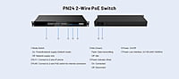 Fanvil PN24 2-Wire PoE Switch Features & Specifications: Reuse existing wires (PSTN & RVV cables) to save wiring costs Plug-and-Play. Support network and power supply for 2-wire devices, with a transmission distance of up to 300 meters Cascade via Ethernet cables for a more stable transmission Built-in power supply, supports 100~240V wide voltage input Built-in device power switch RJ45 network interface Power indicator light and network indicator light 24 2-wire interface